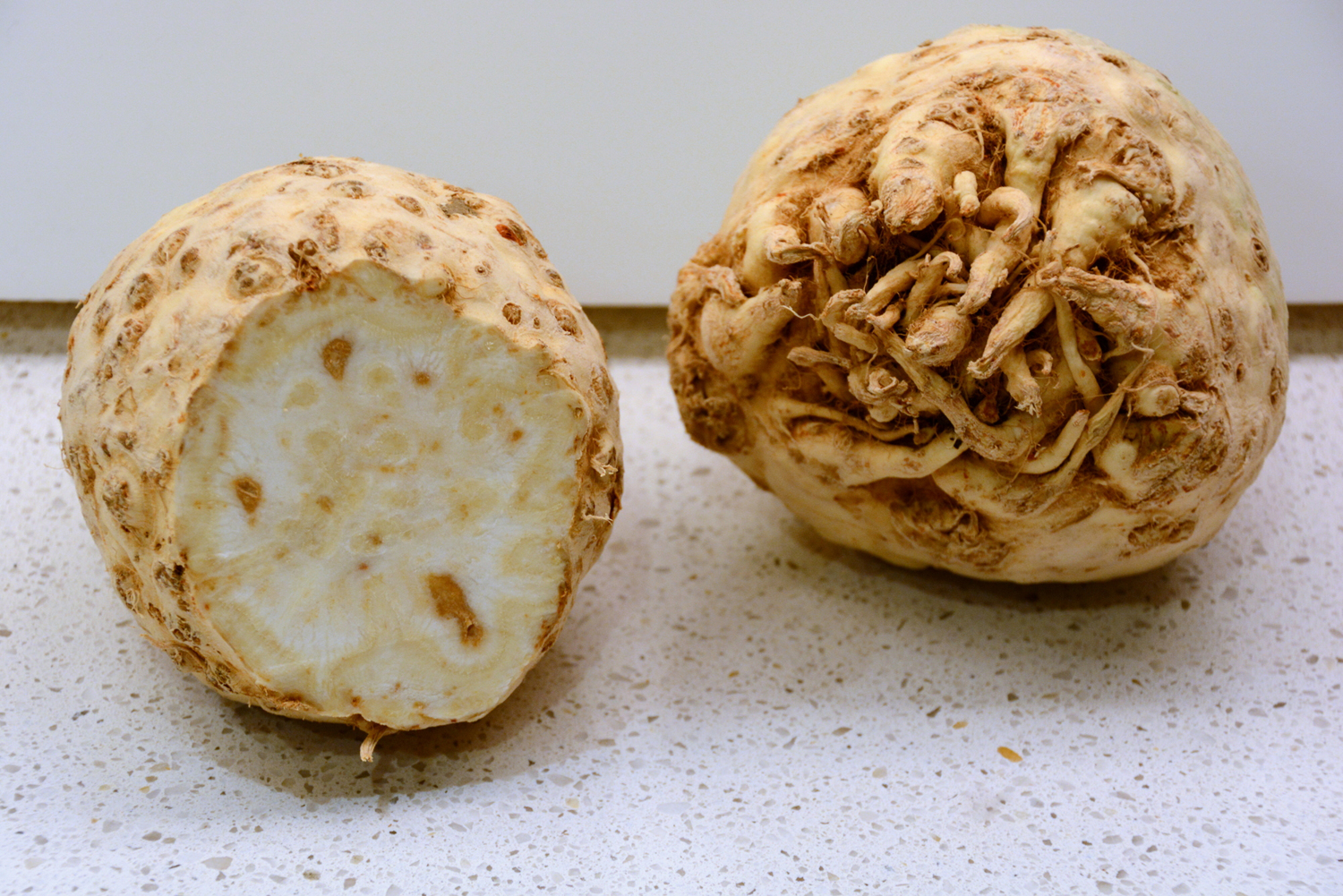 Può sembrare complicato ma sbucciare e tagliare il sedano rapa è davvero semplice: con un coltello ben affilato si inizia a rimuovere la buccia, andando qualche millimetro in profondità. Una volta arrivati alla zona delle radici si tagliano cercando di rimuovere il meno possibile della polpa interna. Purtroppo qualcosa sarà necessario buttare perché spesso le radici arrivano in profondità ed è davvero difficile rimuoverle con precisione. Una volta sbucciato è meglio lavarlo dato che lo avremo sicuramente sporcato con un po’ di terra delle redici.