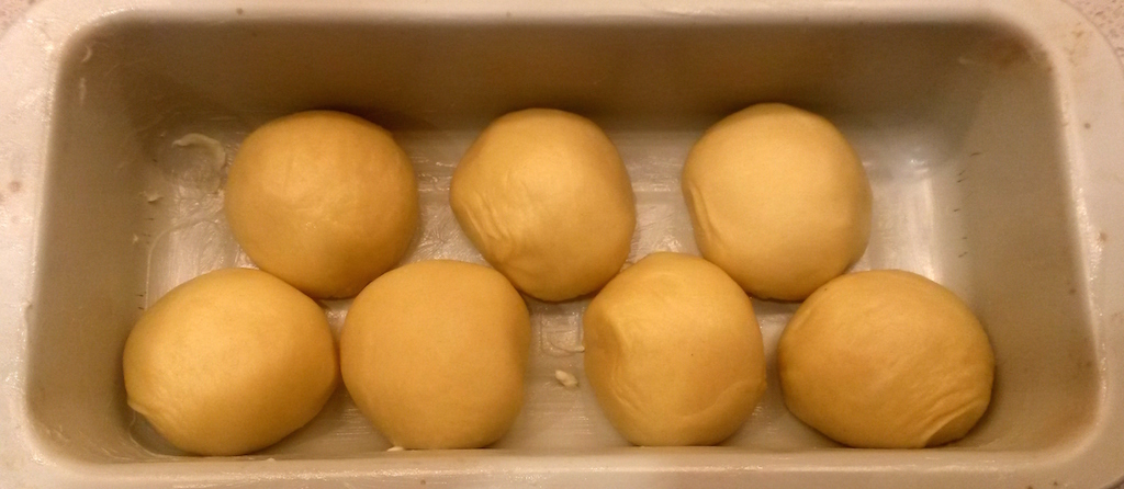 L’ideale è uno stampo con gli angoli retti, l’effetto del pan brioche sarà più bello, quello che ho usato io è invece uno stampo da plum cake con gli angoli arrotondati. - Se preferite la forma “classica” del pane in cassetta al posto di fare le palline potete fare una palla più grande, lasciarla riposare sempre 10-15 minuti, formare a filoncino ed inserire il filoncino intero negli stampi. Io preferisco però la versione più “tondeggiante” delle semisfere che escono dallo stampo 🙂