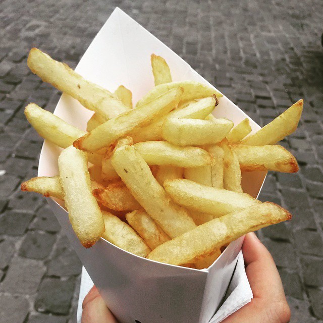 In Belgio le patatine fritte (frites) sono una cosa seria, praticamente uno dei piatti nazionali. La ricetta tipica prevede la doppia frittura e quando sono stato a Bruxelles lo scorso giugno sono partito già da casa con l’intenzione di gustarmi un bel cartoccio di patatine. A Bruxelles infatti ci sono decine, se non centinaia, di friggitorie da strada. Alcune sono dei semplici “food truck”, altre più attrezzate con pareti in muratura e vere e proprie cucine.