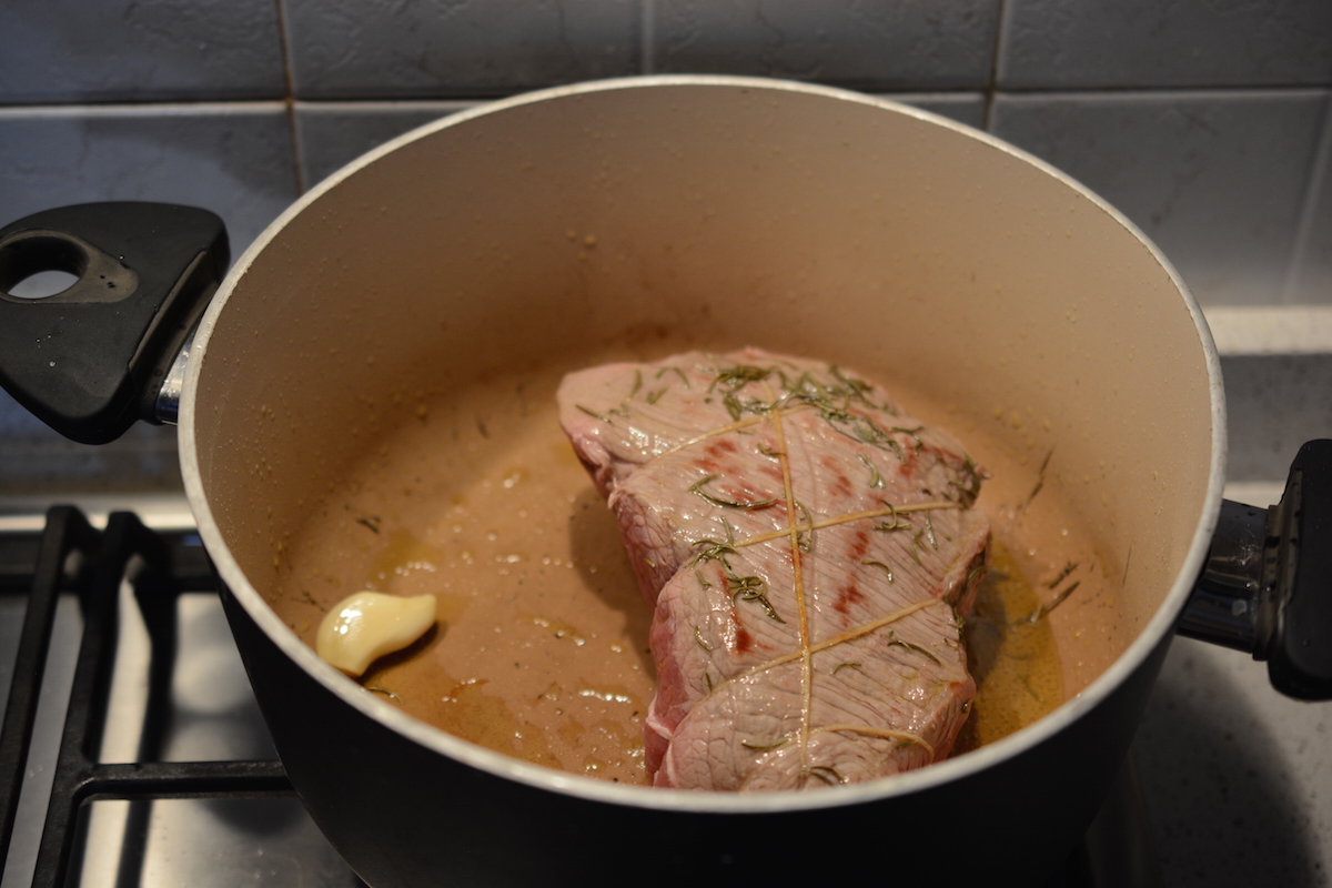 - Rosolare la carne per 4-5 minuti girandola su tutti i lati